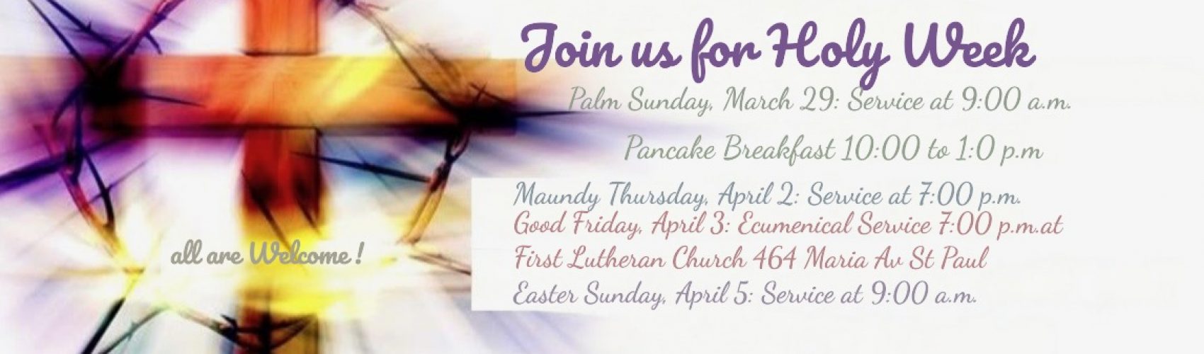 Maundy Thursday service will be here on April 2 at 7:00 p.m.